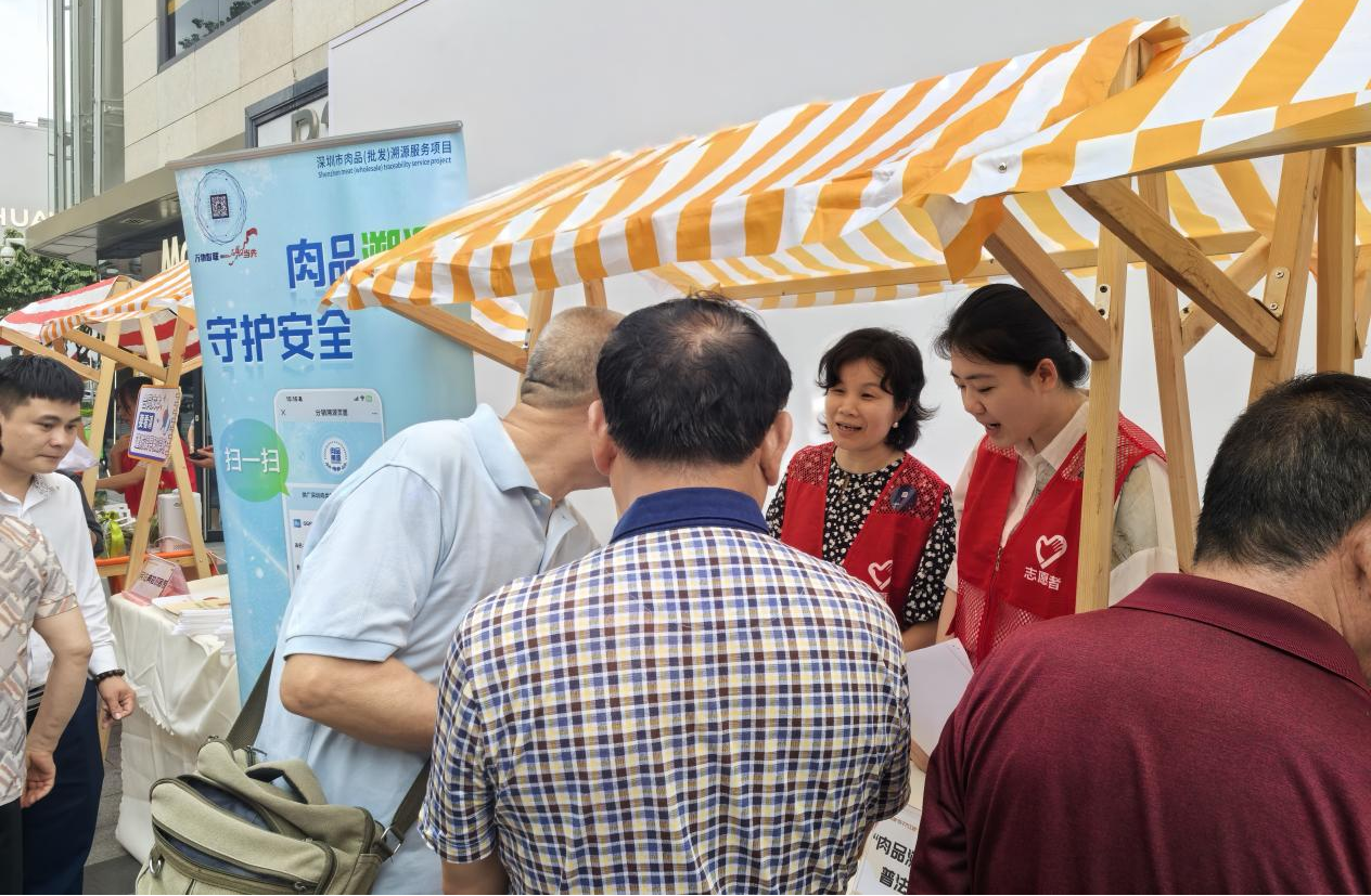 5月21日,我院第五党支部协同深圳市市场监督管理局农管处,到深汕合作区鲘门镇菜园社区开展肉品(批发)溯源服务宣传活动。第五党支部成员向社区介绍肉品(批发)溯源系统,引导居民通过手机扫描二维码,直观了解溯源系统的功能界面。