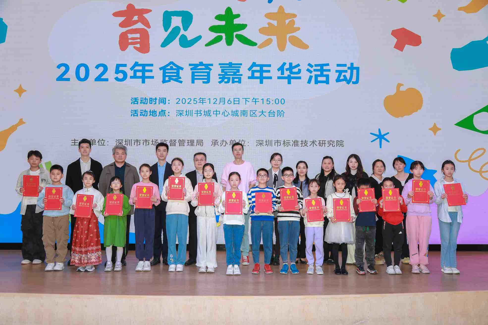 12月6日下午,由深圳市市场监督管理局主办、深圳市标准技术研究院承办的“2025年深圳市青少年食育嘉年华活动”在深圳书城中心城南区大台阶成功举办。本次活动包含食育绘画及书法大赛作品展览、食育大赛颁奖、食育小课堂、知识问答等环节,从趣味性、科学性、知识性出发,点燃儿童青少年参与食育科普的热情。