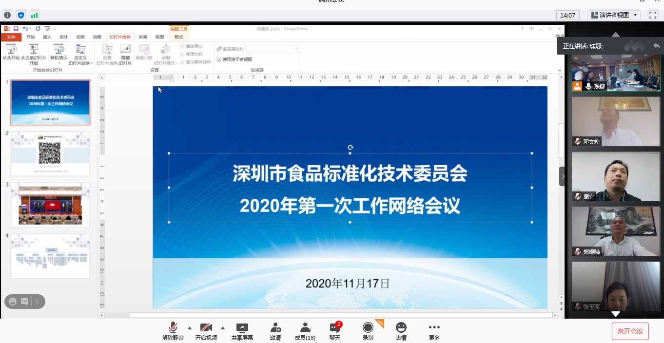 近日,深圳市食品标准化技术委员会(以下简称“食品标委会”)以网络视频形式,组织召开了食品标委会2020年第一次工作会议。