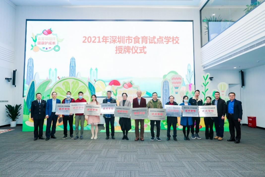 活动最后,举行深圳市首批食育试点学校授牌仪式,作为深圳市首批食育试点学校,景园外国语学校、福强小学、笋岗小学等10所学校高度重视校园食育工作,积极参与食育主题班会课、实践活动、师资培训等食育推进工作,发挥辐射带动作用,共同为孩子们的健康成长保驾护航。