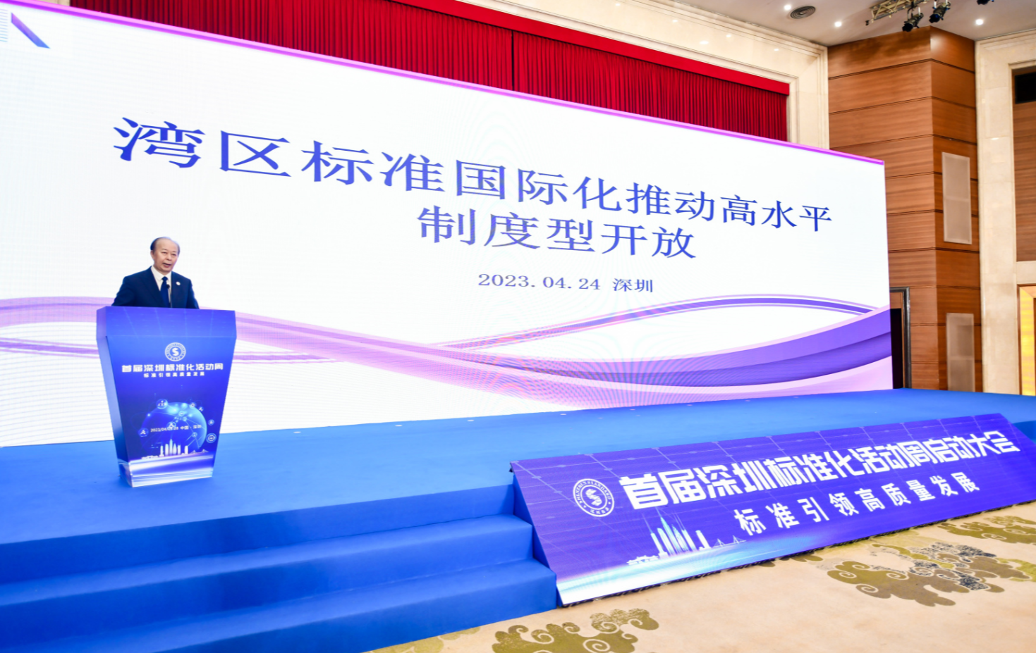 首届深圳标准化活动周启动大会于今天(4月24日)上午在五洲宾馆召开。国家市场监督管理总局党组成员、副局长、国家标准化管理委员会主任田世宏,深圳市委常委、政法委书记余钢,国家市场监管总局相关司局和广东省市场监督管理局相关领导,深圳标准工作领导小组成员单位以及相关产业和技术机构代表近300人参加会议。