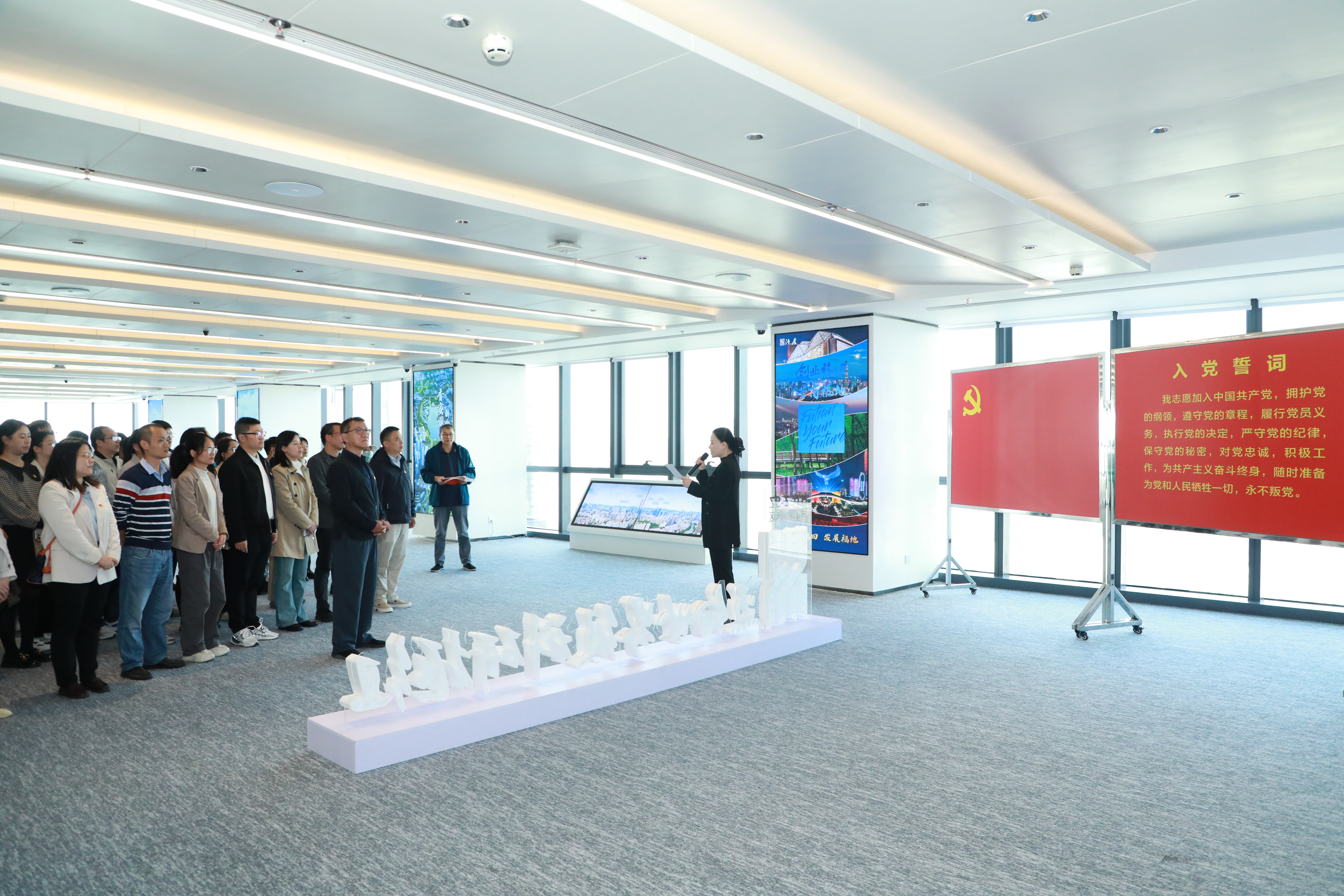 党员同志们首先走进河套深圳园区展厅,在专业讲解引导下,系统了解合作区的发展脉络、核心创新成果及肩负的战略使命,直观感受区域高质量发展的强劲动能与创新活力。随后,集体“政治生日”仪式正式举行,欧阳莎同志带领全体党员进行庄严宣誓,重温入党誓词,铮铮誓言彰显初心本色;同时,她向下半年入党的党员同志致以诚挚的“政治生日”祝福,传递组织关怀。仪式最后,参加活动的院领导为各党支部党员送上定制“政治生日”贺卡,勉励大家始终铭记入党初心,在奋进路上永葆党员先进性。